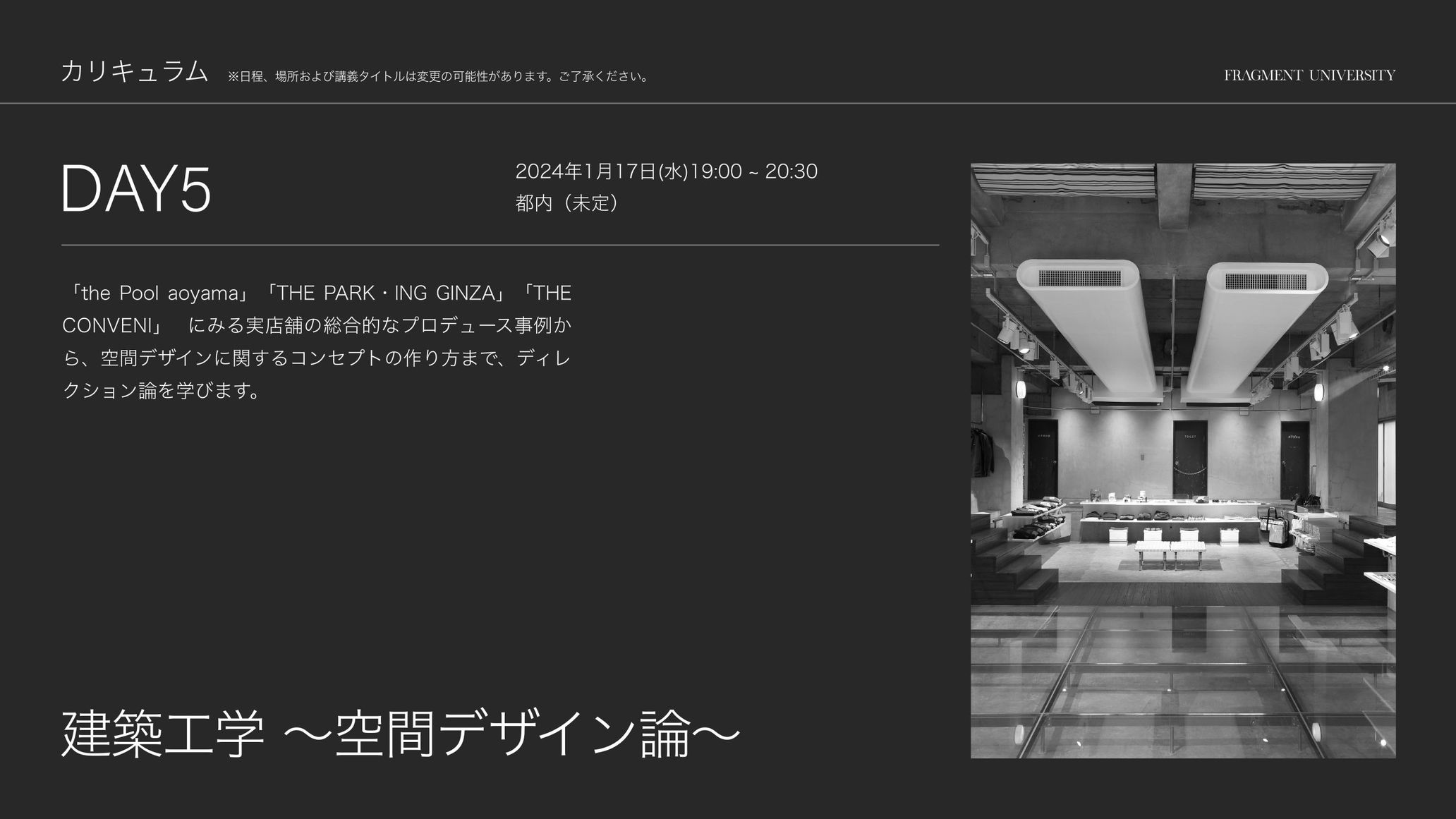 「the Pool aoyama」「THE PARK・ING GINZA」「THE CONVENI」にみる実店舗の総合的なプロデュース事例から、空間デザインに関するコンセプトの作り方まで、 ディレクション論を学ぶ。
