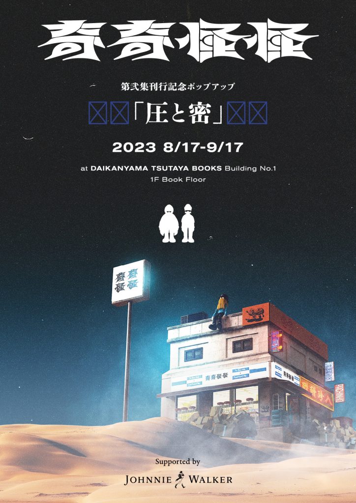 Dos MonosのラッパーTaiTanと、MONO NO AWAREのボーカル玉置周啓によるPodcast番組『奇奇怪怪』の書籍『奇奇怪怪』第弐集の発売を記念して、記念ポップアップ「『圧と密』Supported by JOHNNIE WALKER」が代官山 蔦屋書店で9月17日まで開催されている。