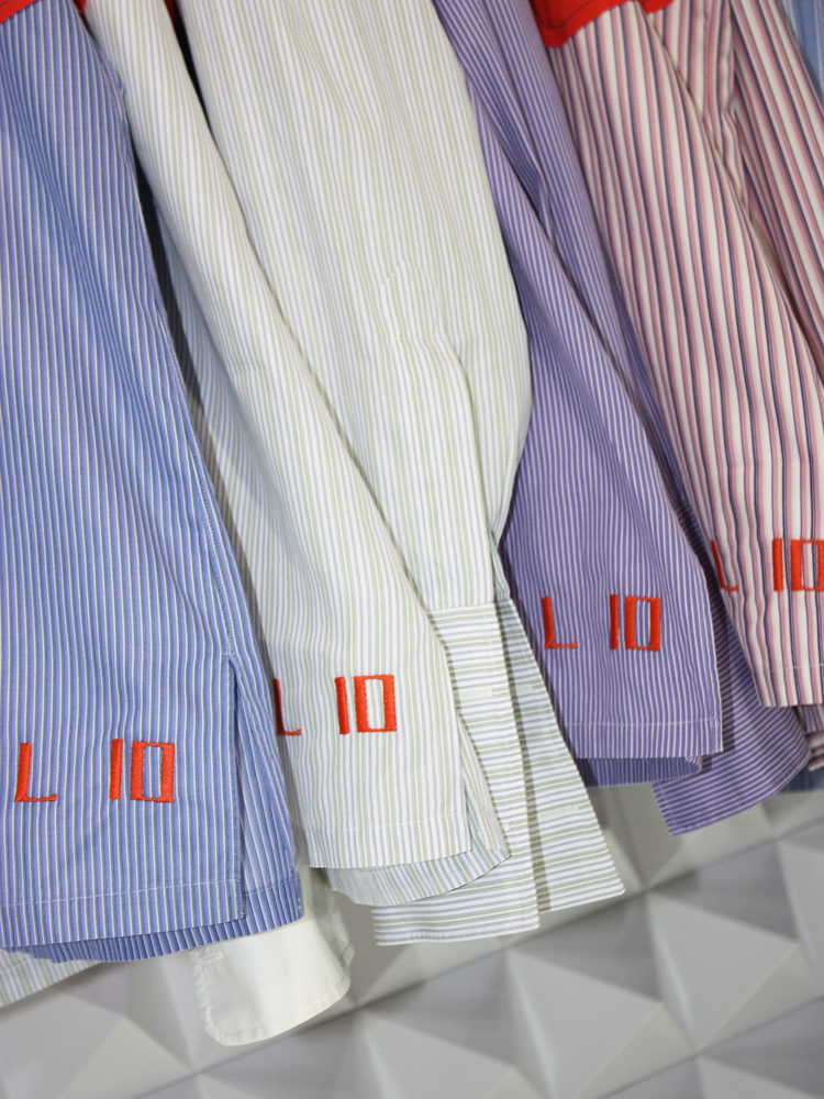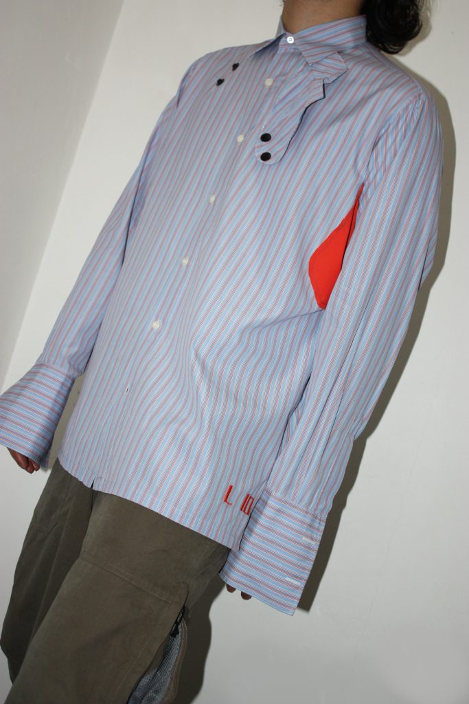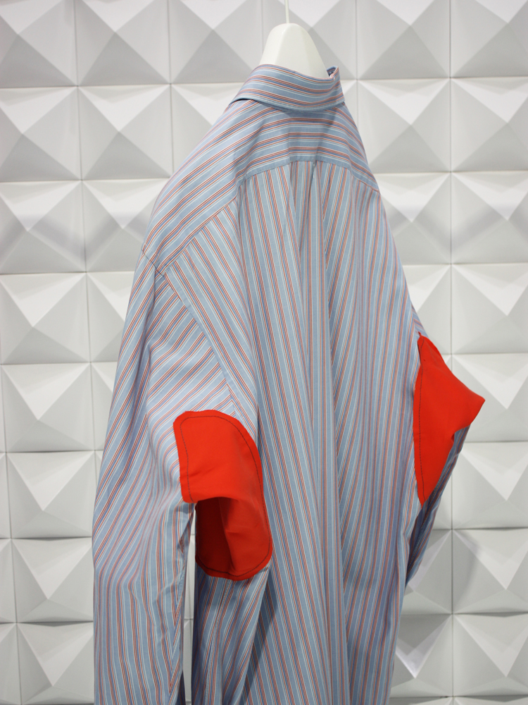 本コレクションのベースとなるのは、フレンチヴィンテージドレスシャツ。両アームに施された抽象的なパッチワークは、「キコ コスタディノフ」2020年秋冬コレクションに使用したオリジナルストレッチファブリックの残布。ブランドの代名詞でもある機能的なフォルムを携え、構築的なディテールを演出すると共に、サステナビリティという視点も意識されている。デザイナーのキコ自らの手仕事による独創性を感じる、コンテンポラリーな仕上がり。10 着のみ制作された特別な服となる。