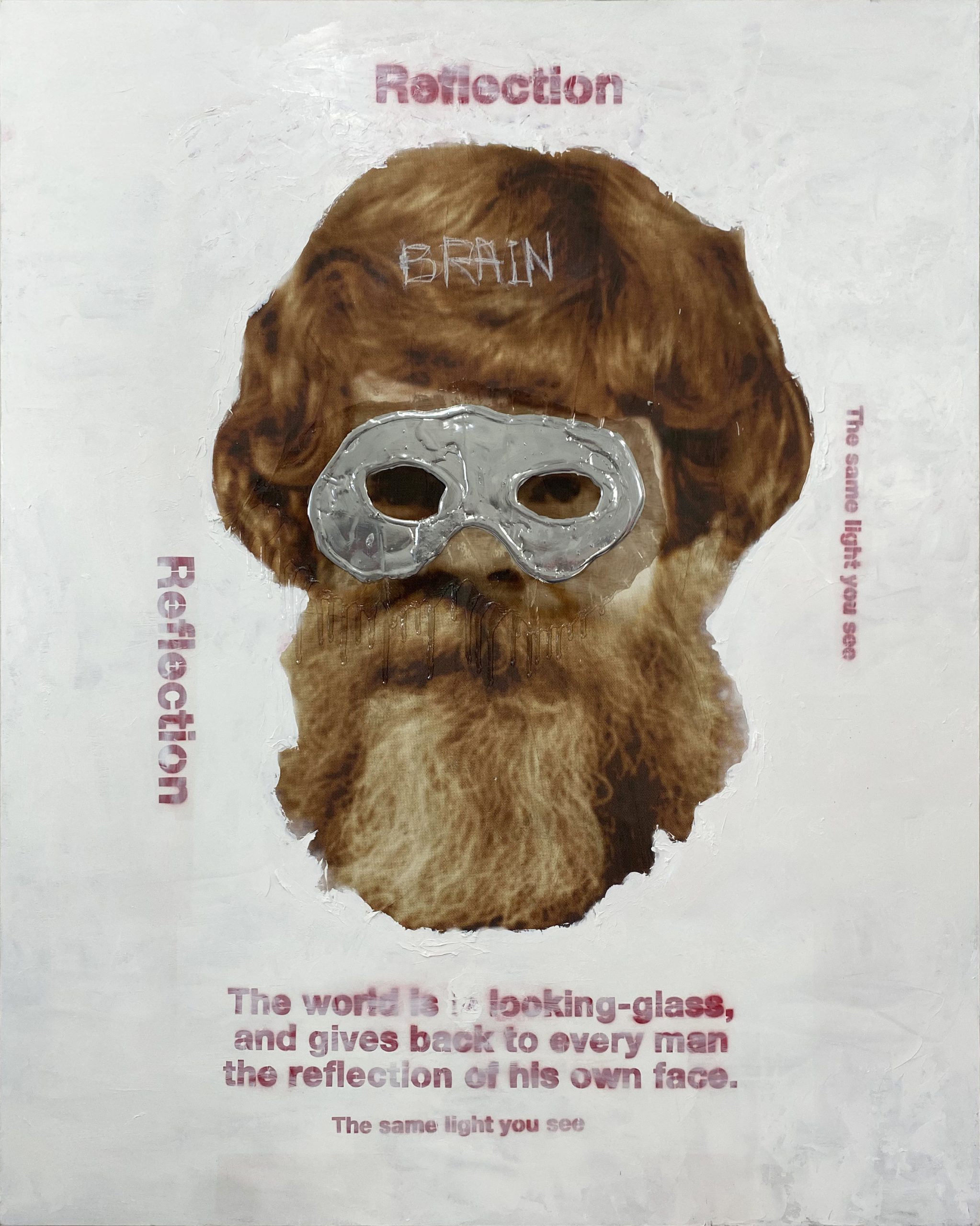 本展では、ポートレートの重要要素である顔や表情を、メディウムやレジン、シルバーなどのペイントで覆った“クローム(Chorome)シリーズ”を展示する。人間の持つ温かみや有機性を、クロームメッキのような無機質な素材を重ねることで相対化し、被写体の本来の姿や本質を浮き彫りにしようとする作品群だ。また、展覧会のタイトルには、表情が隠されたポートレートを観ることによって、鑑賞者が被写体の断片から自己相似性を見出し、自身の存在を再認識する一連の体験を込めている。